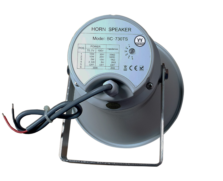 Estos altavoces exponenciales van de 3W a 30W, con una presión máxima de 98dB, incorporan un selector de  100V ó 8Ω. Están construidos con materiales capaces de soportar cualquier tipo de cambio climático.
