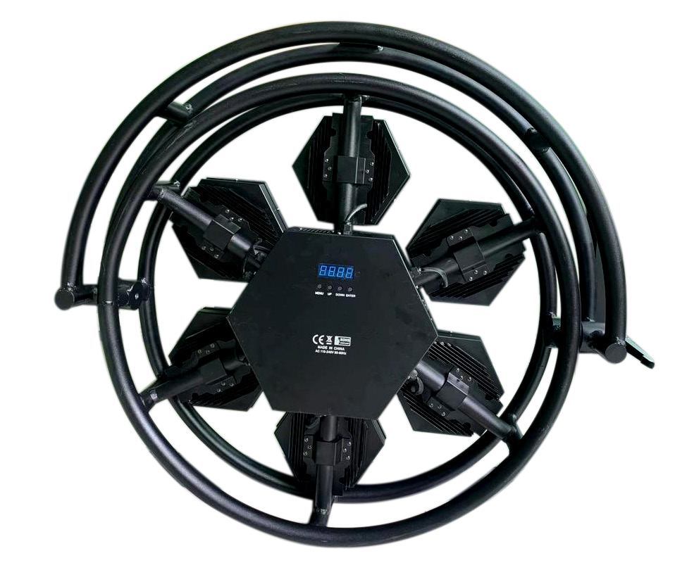 Luz LED Hexagonal Blinder efecto HALO profesional de 7 x 60W ofrece una iluminación deslumbrante que combina la potencia de un blinder tradicional con el efecto visual del halo, creando así un impacto visual impresionante.    Es perfecto para resaltar momentos clave en cualquier espectáculo, aportando dramatismo y energía al escenario.  Ideal para conciertos, festivales y eventos donde se busca un efecto de iluminación intenso y memorable.
