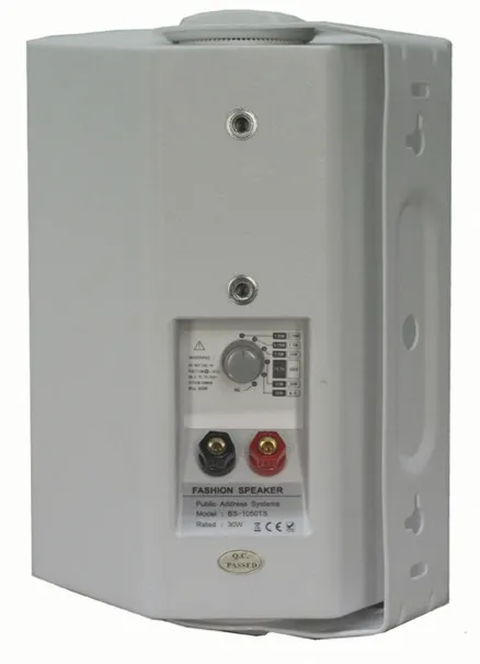 La linea de bafles BS de MUSICSON ha sido creada para sonorizar instalaciones fijas con una alta calidad acústica. La serie consta de tres modelos, adaptándose a cualquier tipo de instalacion, comprendiendo un bafle de 5” y motor de 1”, altavoz de  6” y motor de 1”, y el modelo más potente con 8” y motor de 1”.  Cada modelo incorpora en su parte posterior un conmutador de cinco posiciones, desde el cual podemos seleccionar el modo de  trabajo: cinco potencias seleccionables para instalaciónes con línea de 100V y una quinta posisción de 8Ω.