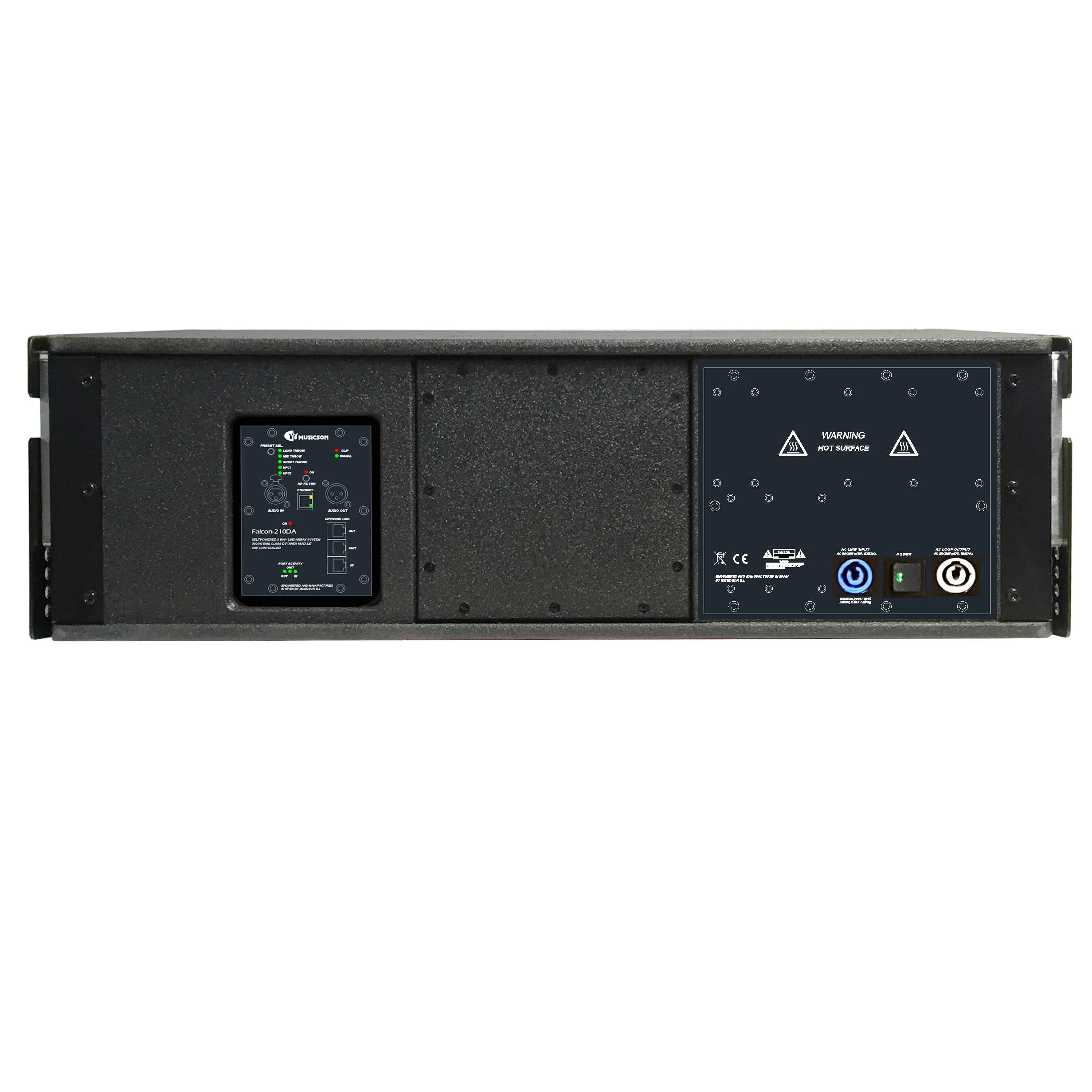 El módulo de amplificación del FALCON-210DA consta de cuatro amplificadores Clase D de 500W cada uno alimentados con una fuente de alimentación conmutada y Universal ( desde 85VAC hasta 265VAC ).
