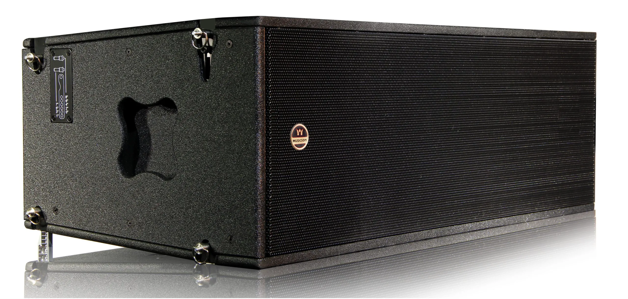 – 2 Altavoces de 12″ para frecuencias graves en los que se emplean bobinas móviles de 3″ de “doble cara” para optimizar la refrigeración a través de las piezas de metal y aumentar su resistencia mecánica evitando calentamientos excesivos y soportando altos niveles de potencia sin compresión por temperatura.